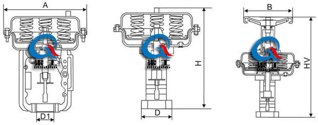 ZHB型:反作用,當(dāng)信號(hào)壓力增加時(shí),閥桿部件向上移。